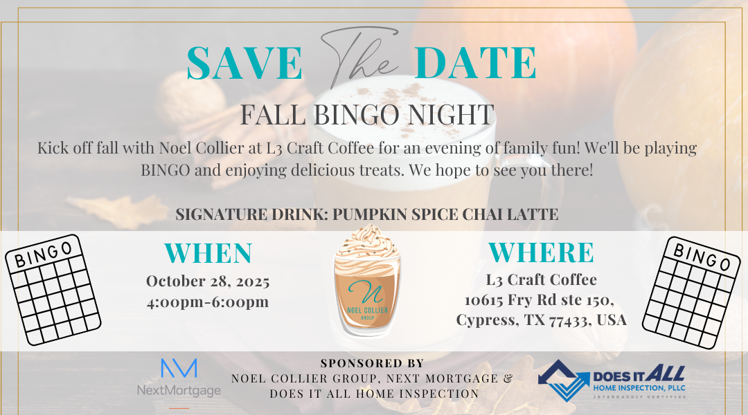 This isn’t your average bingo night. We’re bringing seasonal vibes and community connection together in one cozy space. Grab a friend, sip on L3 Coffee’s signature Pumpkin Spice Chai Latte, and settle in for a few rounds of bingo with the Noel Collier Group.